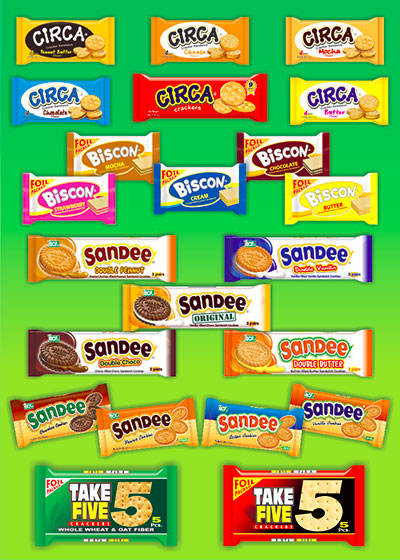 At this stage, Bisconfood International, Inc. has 6 brands to its name – Biscon Sandwich Crackers, Sandee Cookies, Sandee Sandwich Cookies, Circa Crackers, Circa Cracker Sandwich and Take Five. In the months ahead, the company will continue to provide the market with an extensive selection of biscuits and cookies in its serious bid to satisfy the discriminating Filipino consumers’ unquenchable passion for “snacking”.
